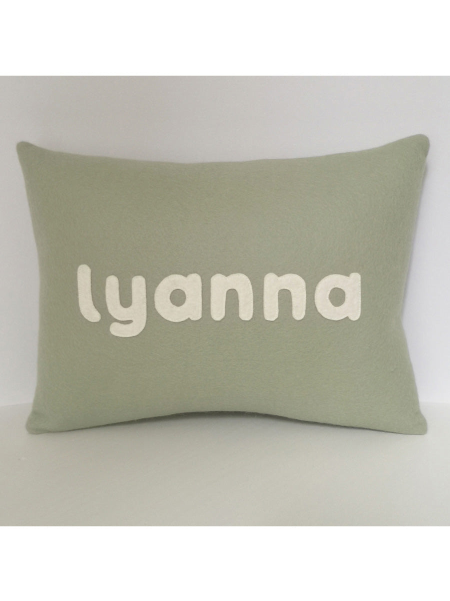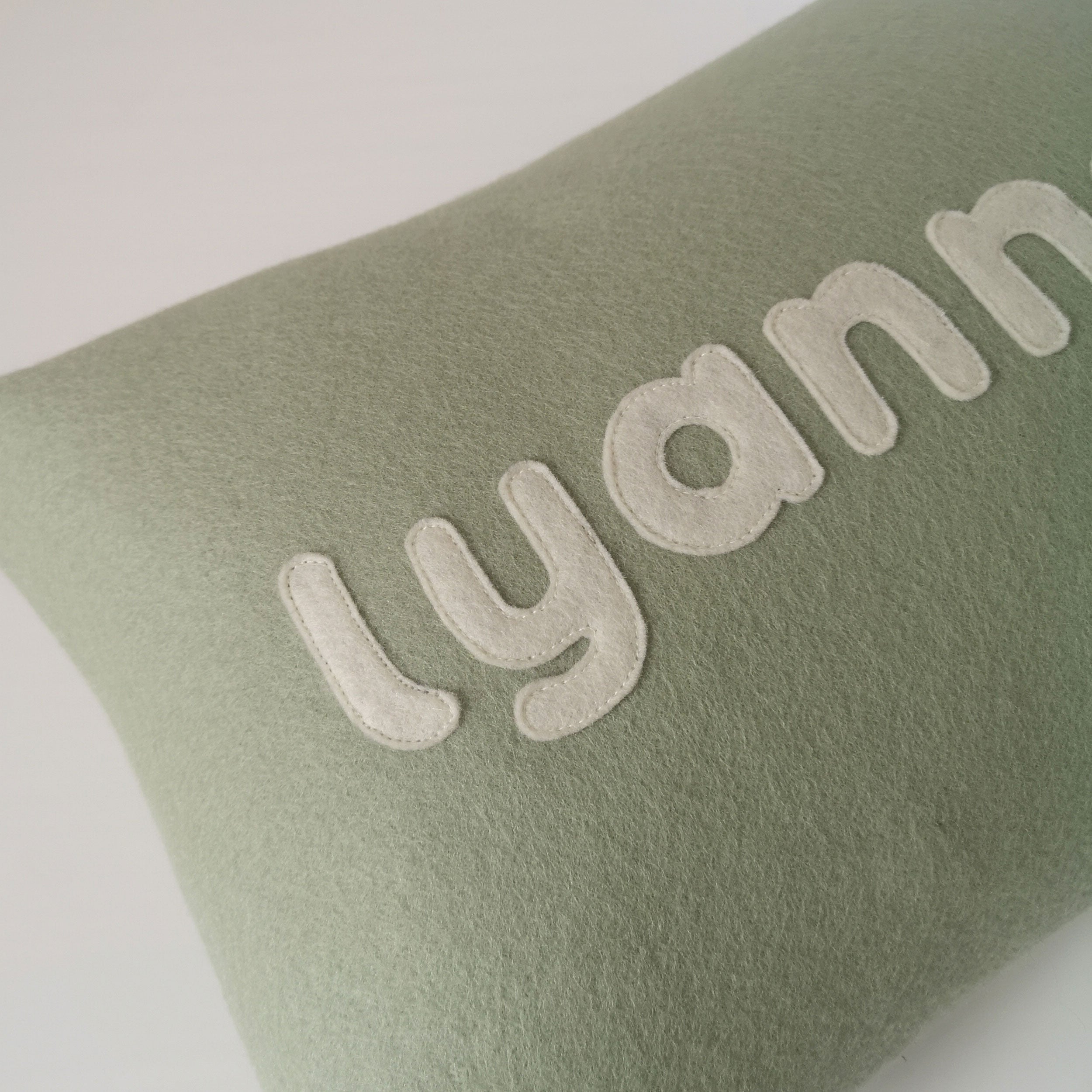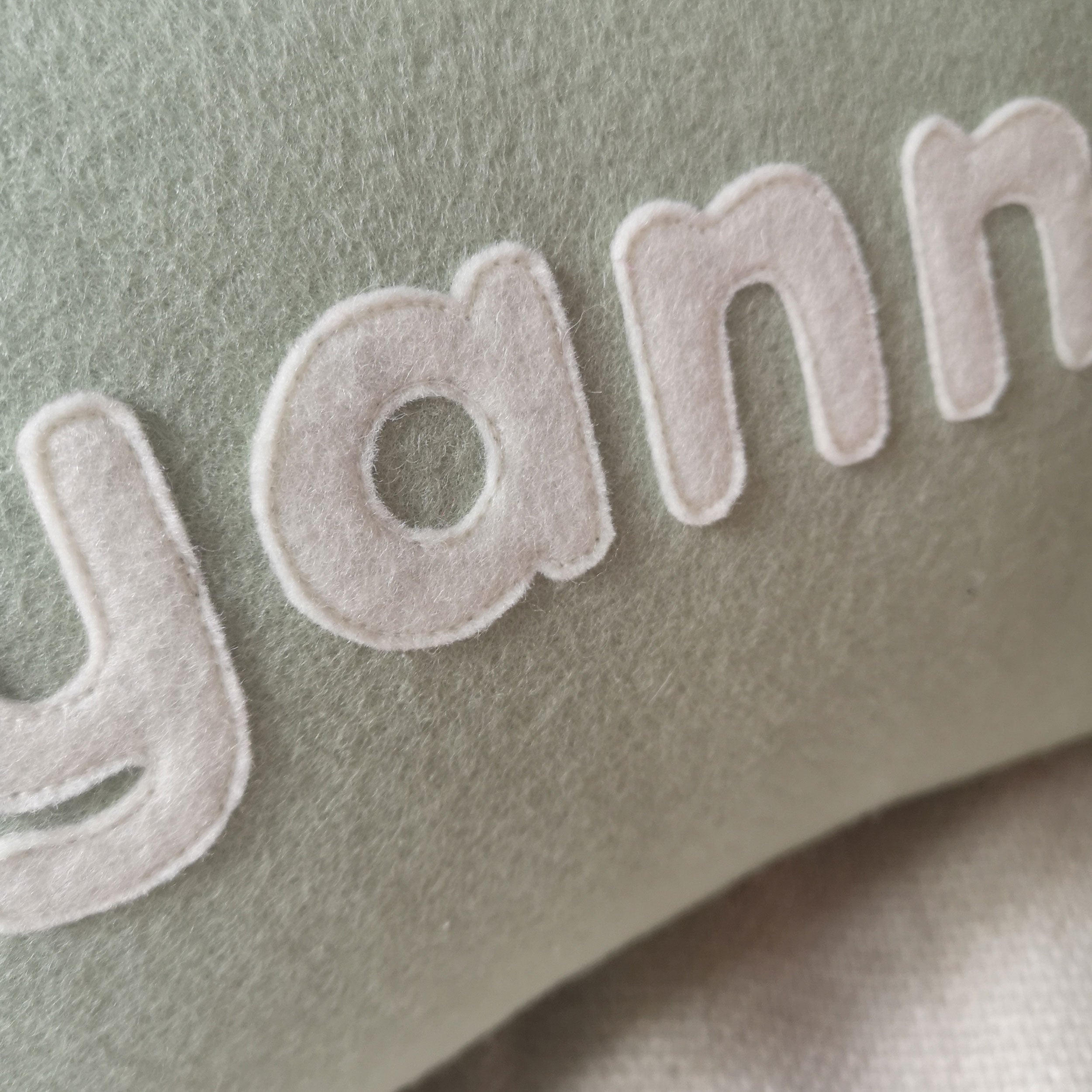 Personalised Cushion With Name in Pistachio and White Wool Felt