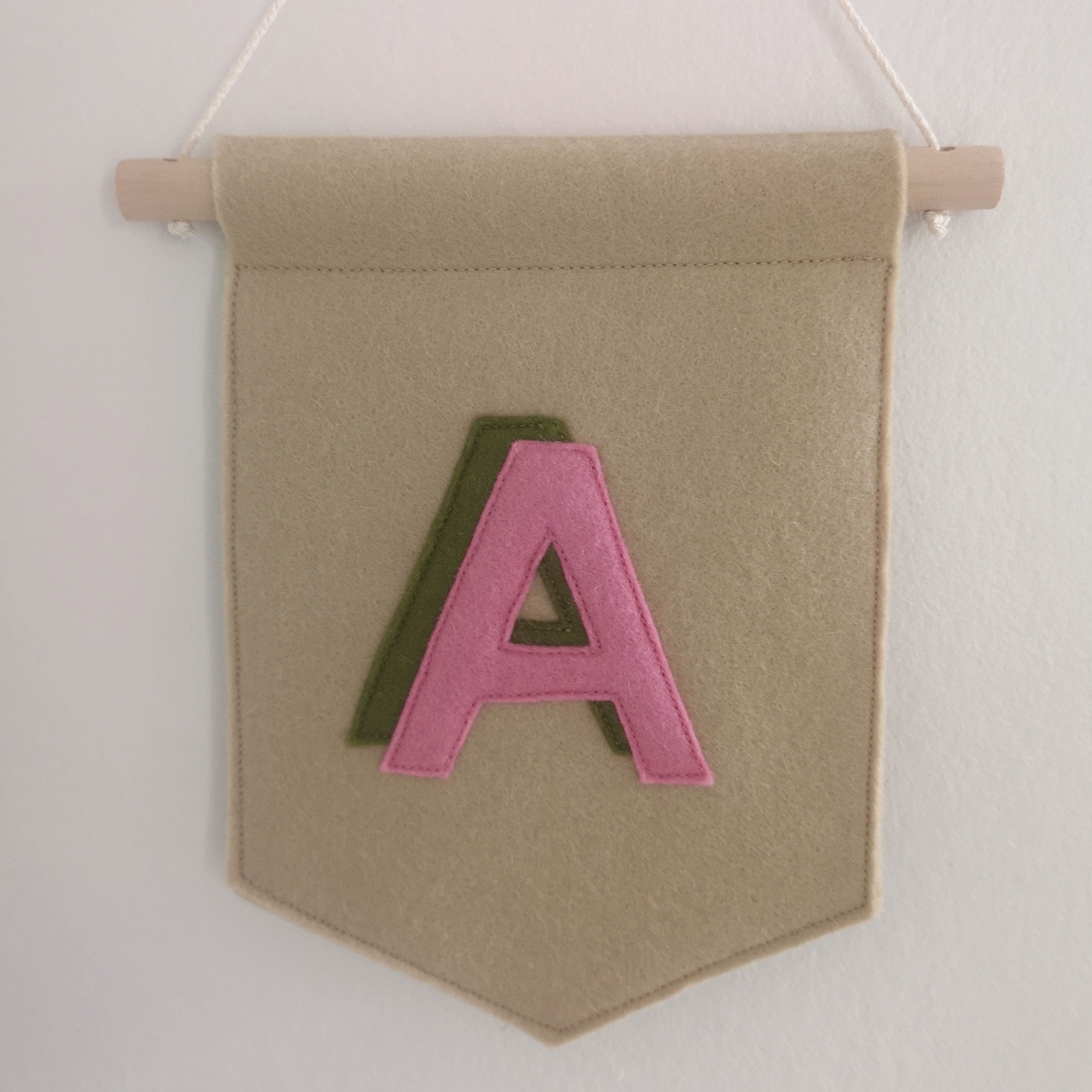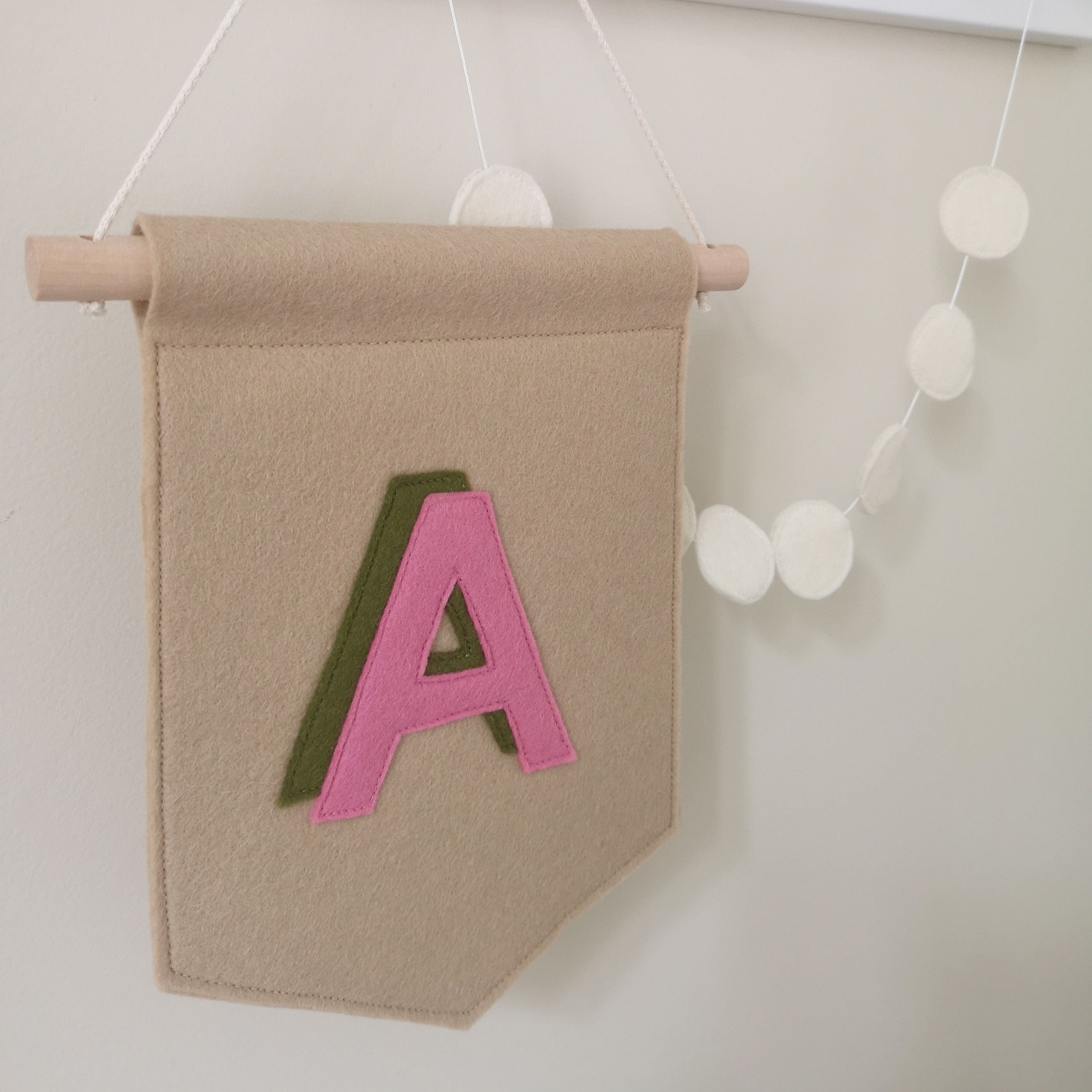 Personalised banner in wool felt with letter - Choose between 18 colours