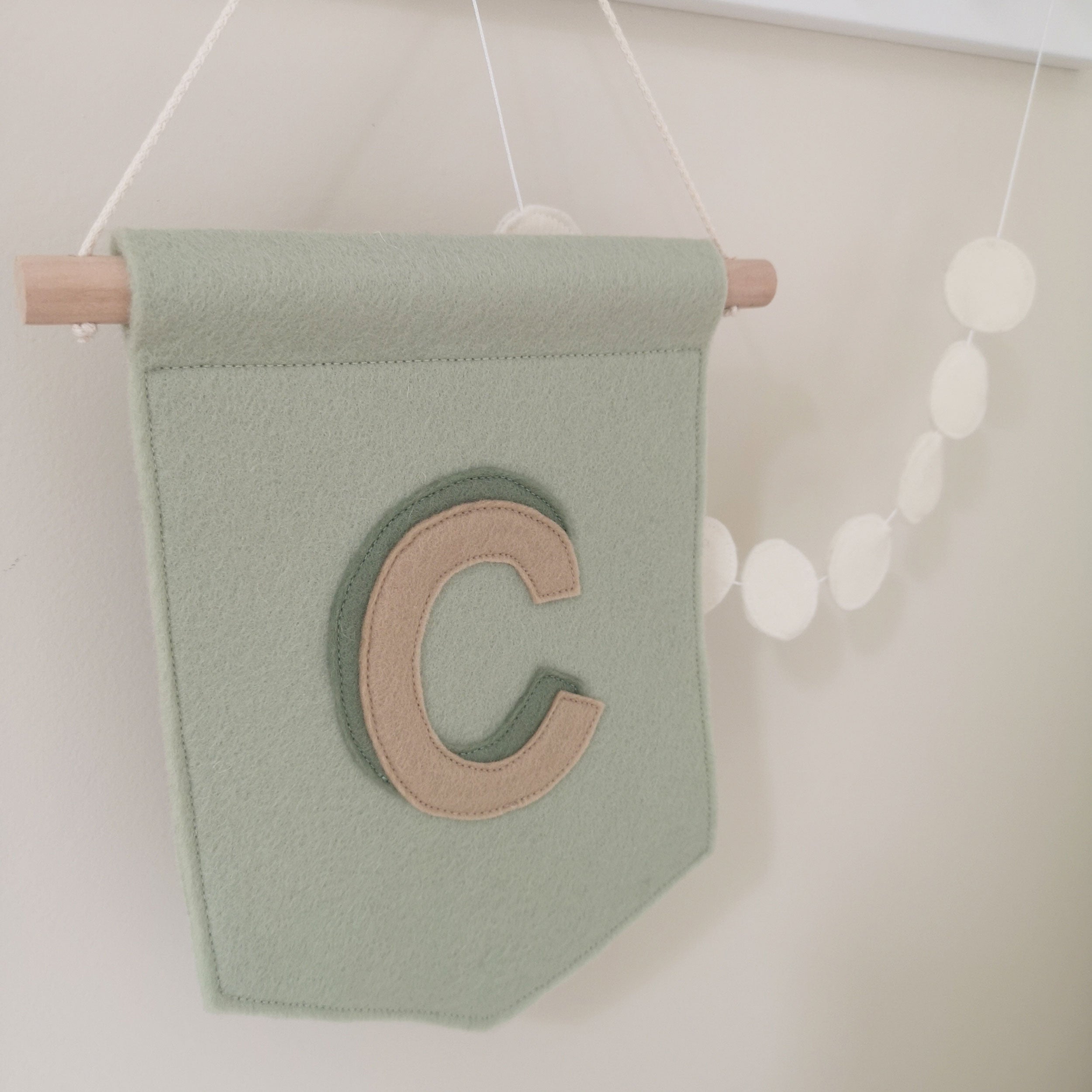 Personalised banner in wool felt with letter - Choose between 18 colours - pistachio and beige