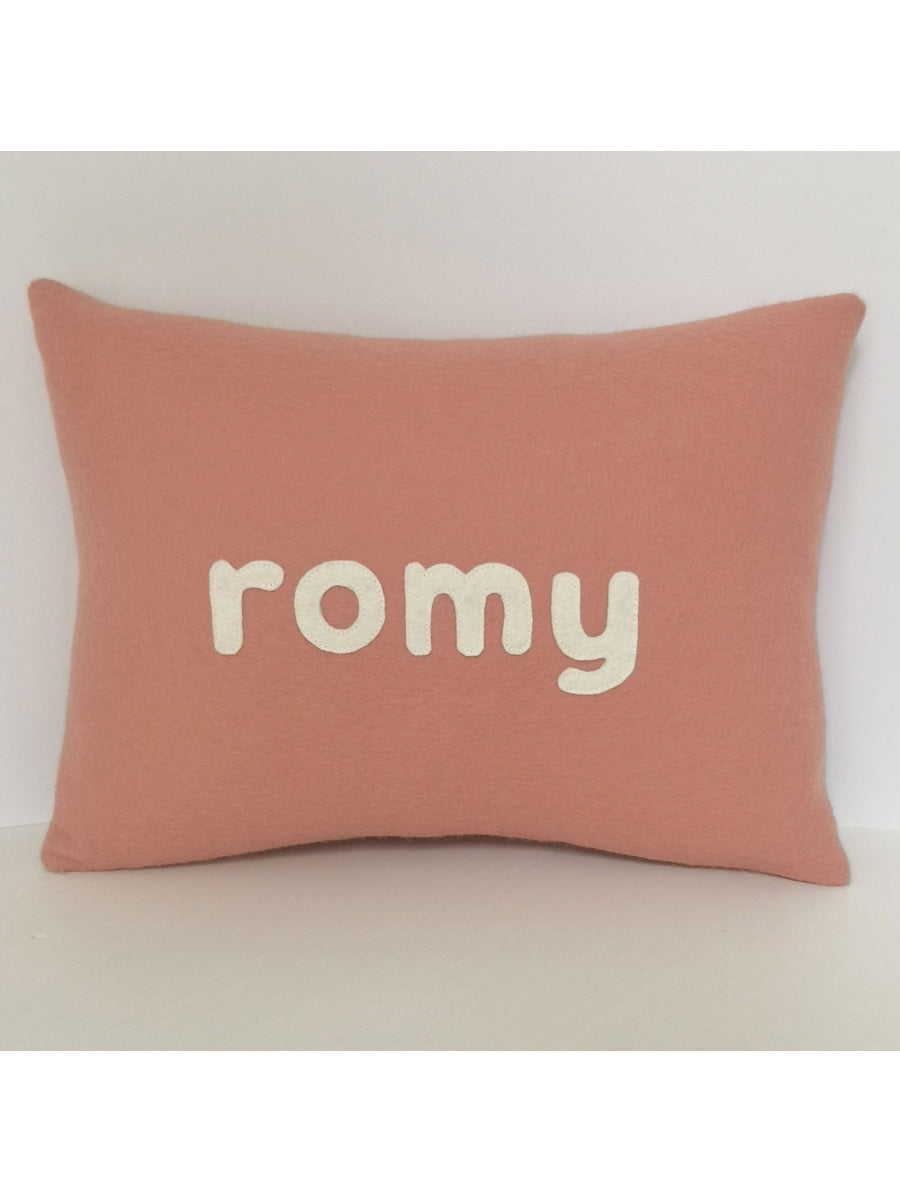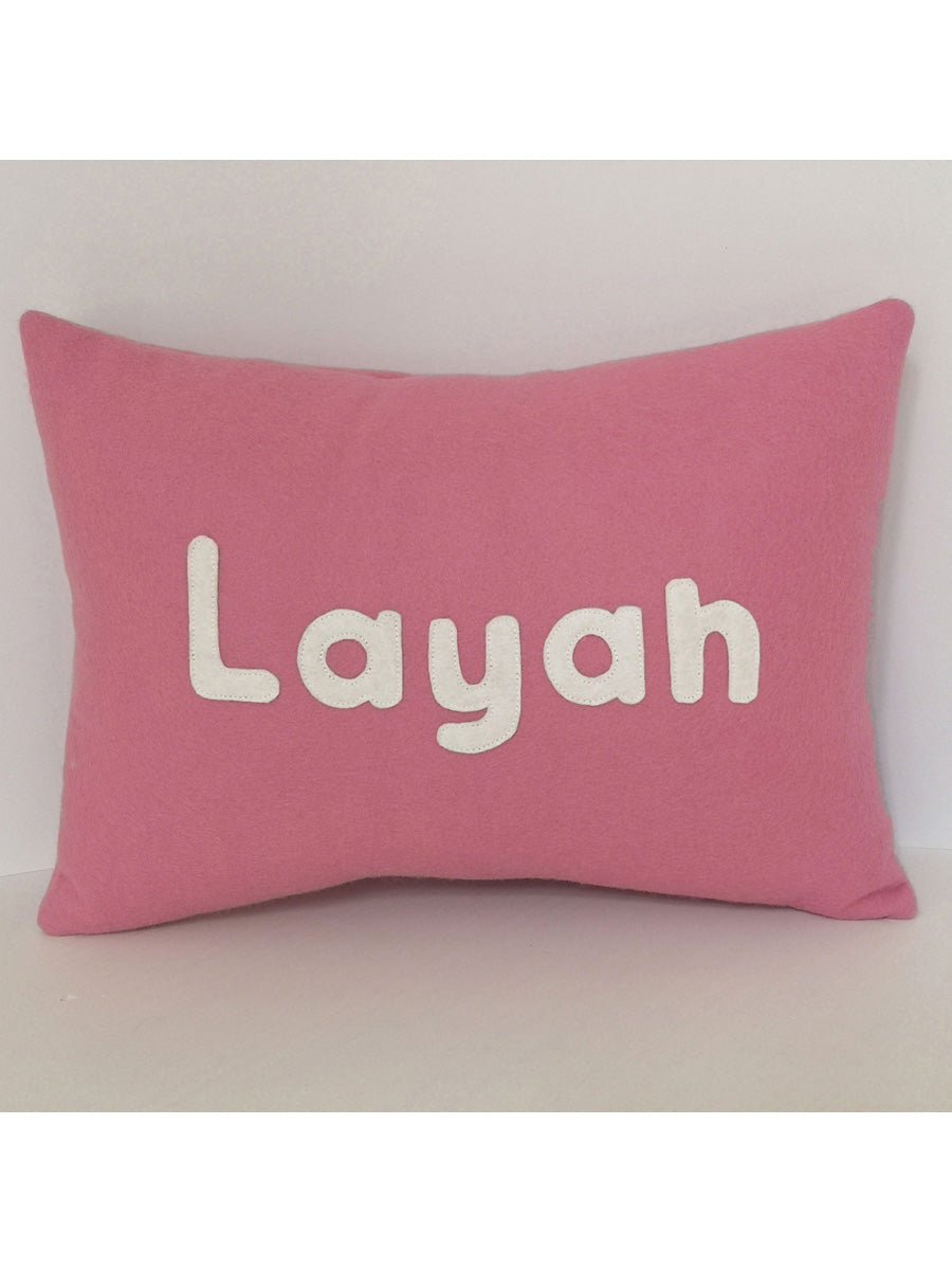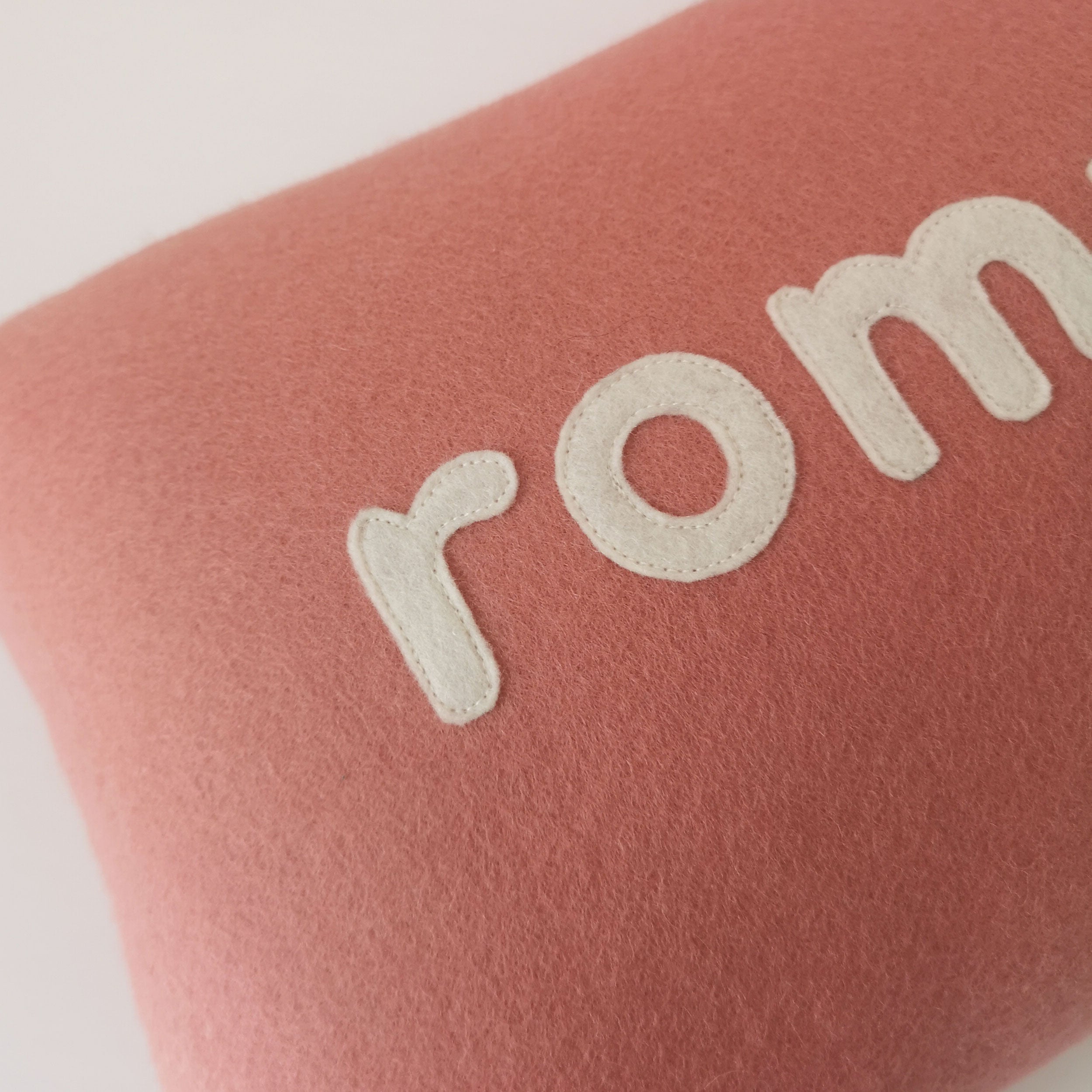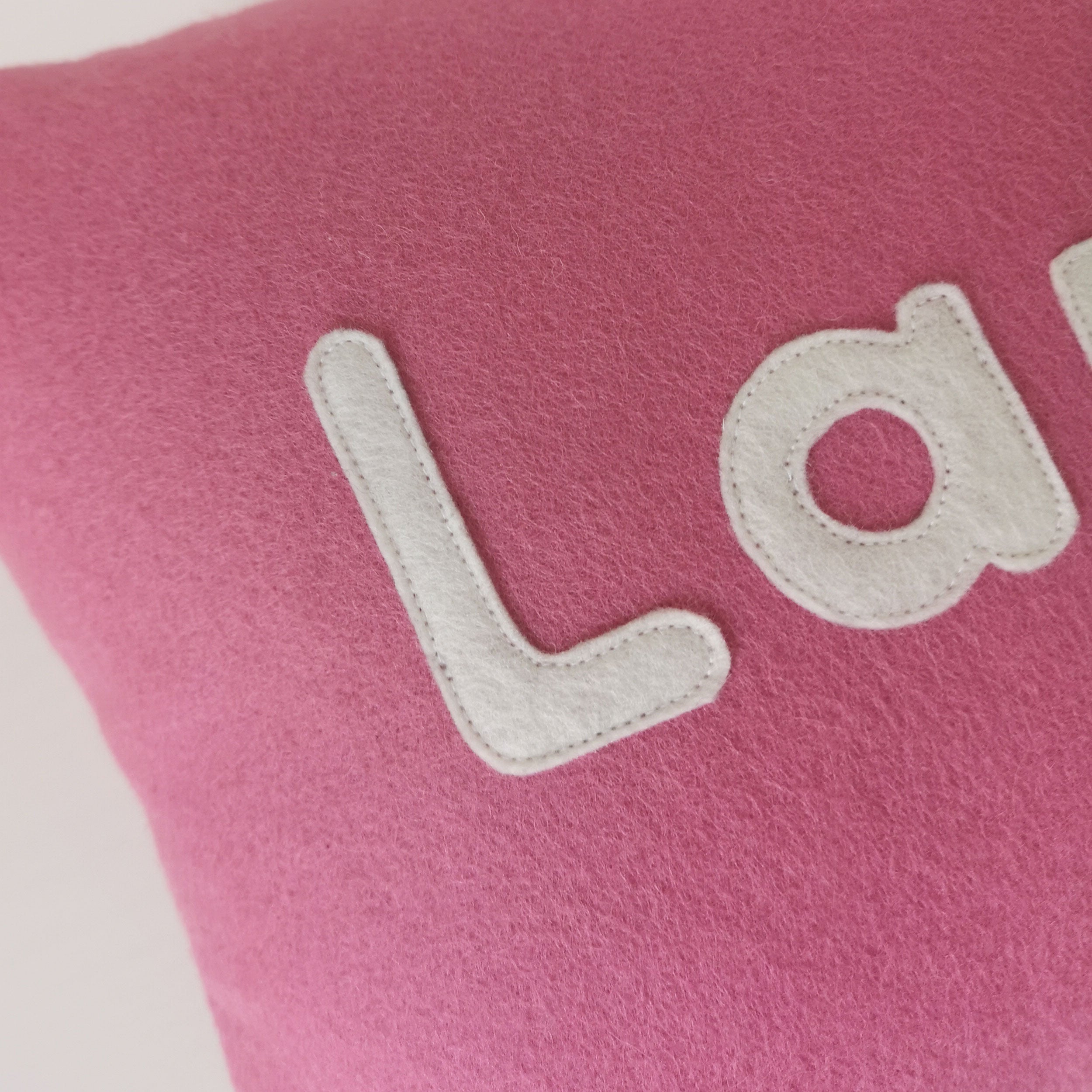 Personalised Cushion With Name in Warm Pink and White Wool Felt