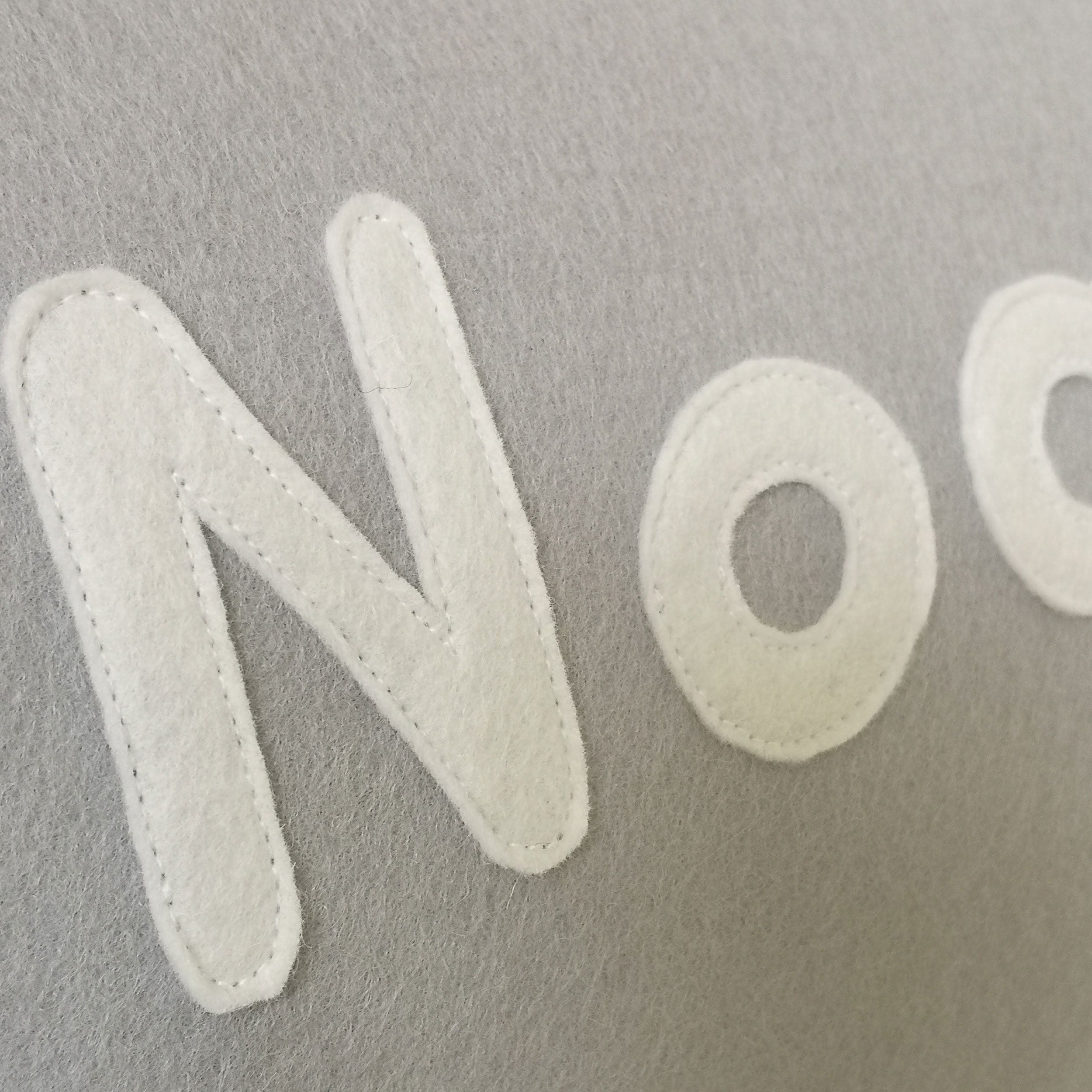 Personalised Cushion With Name in Light Grey and White Wool Felt