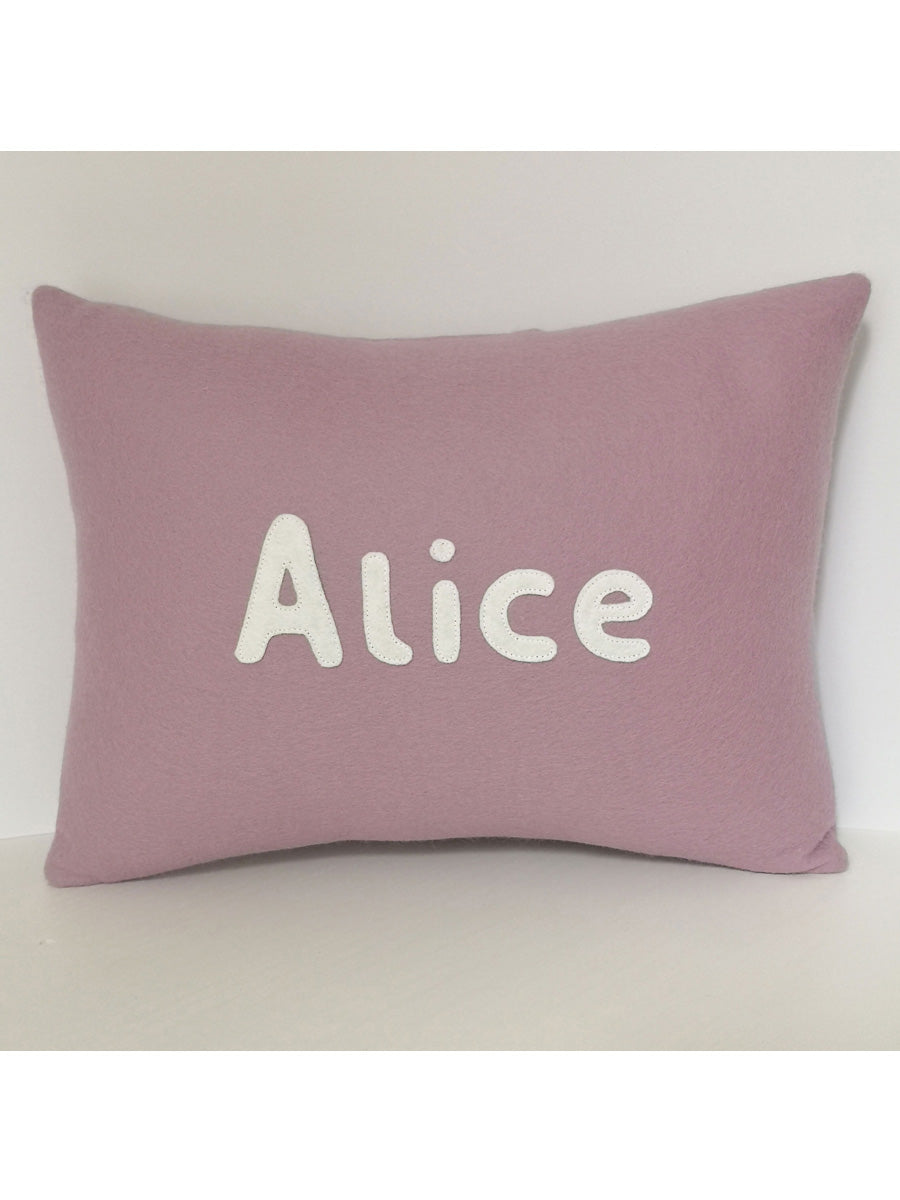 Personalised Cushion With Name in Lavender and White Wool Felt