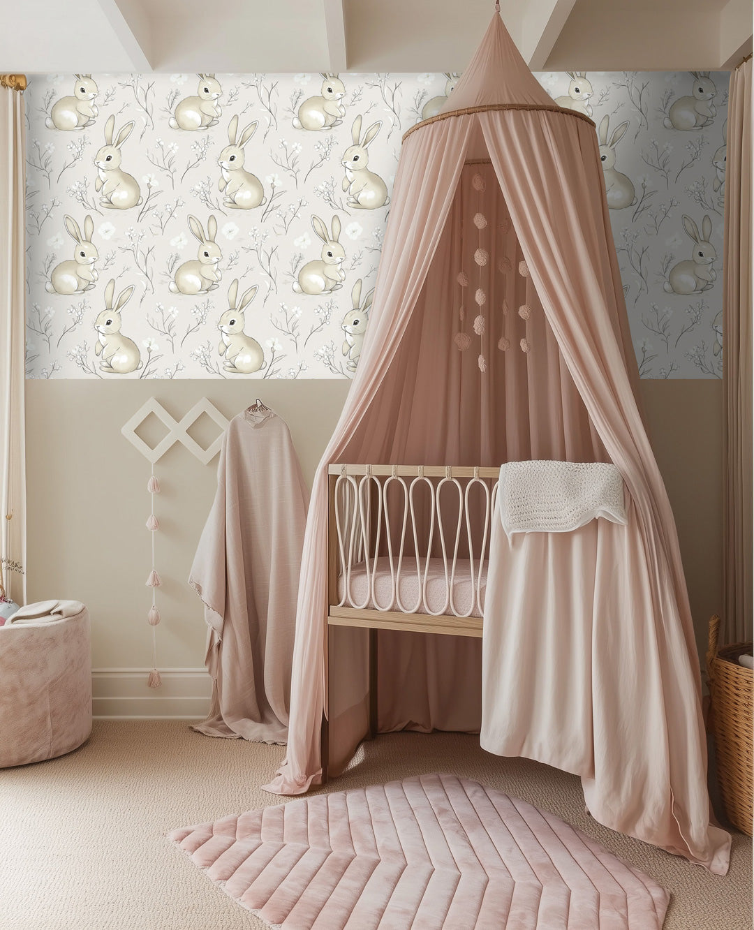 Sample Wallpaper with Bunnies in Grey - BOBBY GREY