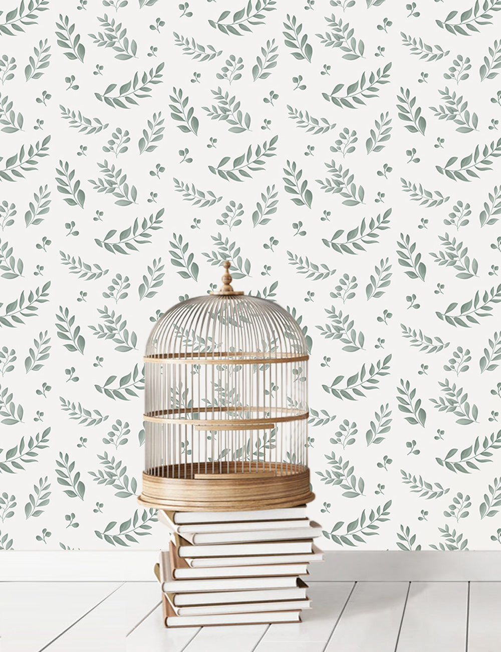 Wallpaper with green leaves onto white background - LEAFY GREEN