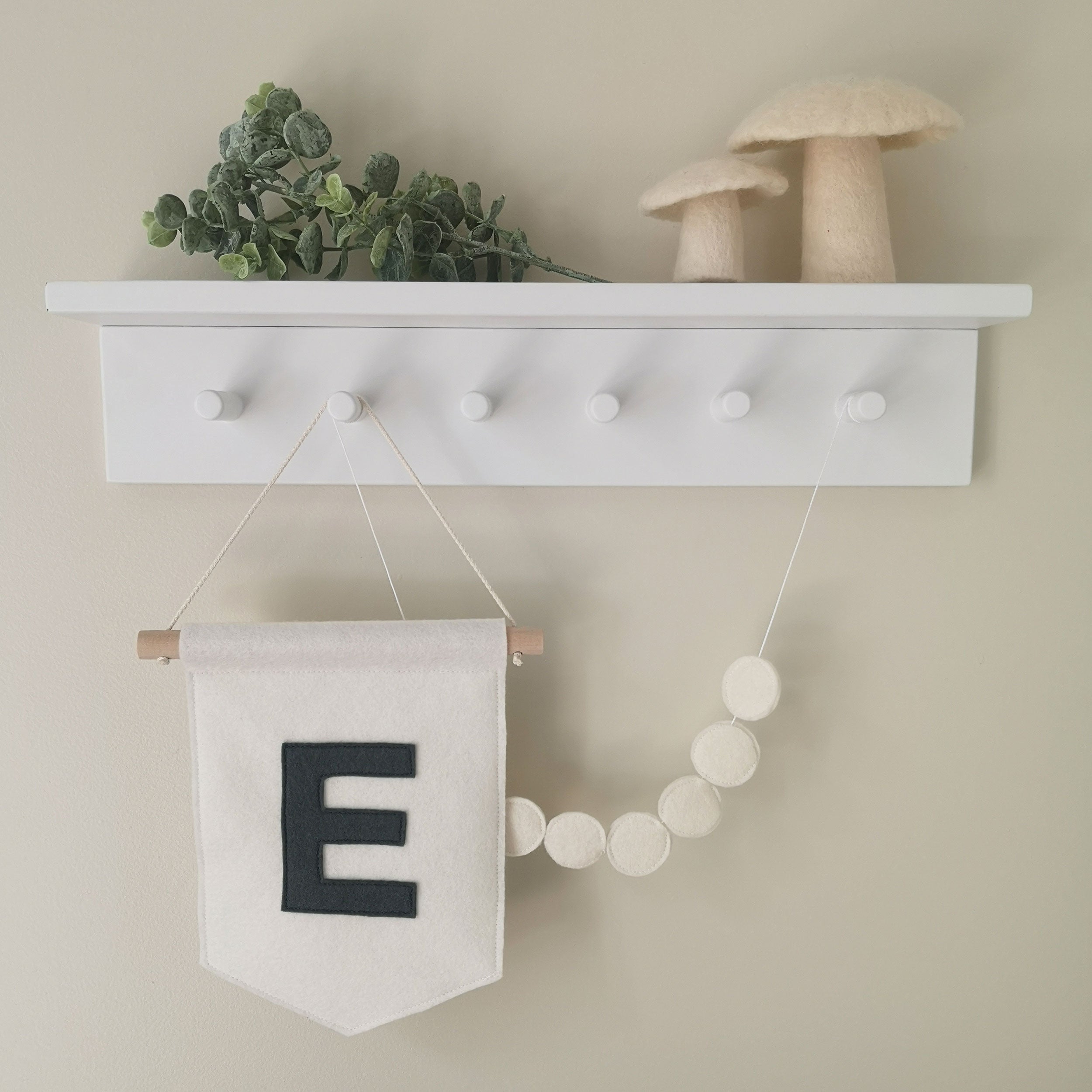 This banner with personalised letter initial will be the perfect touch for decorating a wall in the nursery or kid's room. You can also hang the banner on a door or handle.