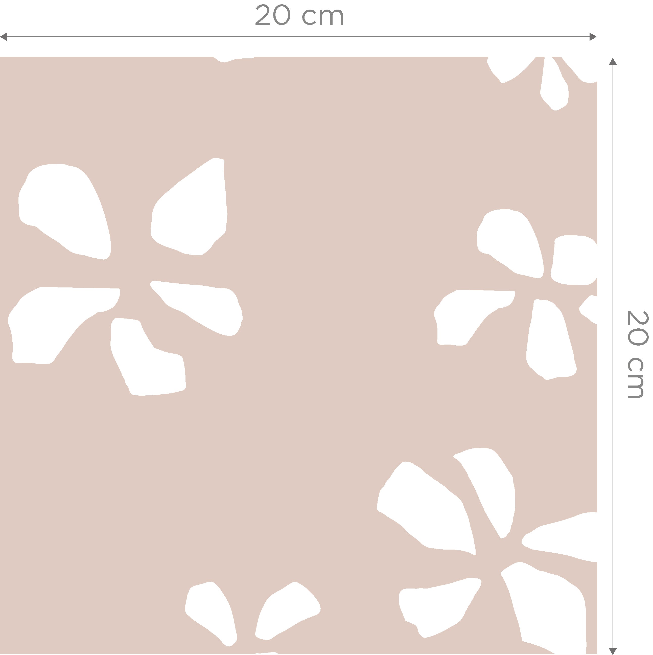 Wallpaper with white contemporary florals onto a beige base printed onto a high-quality non-woven paper.