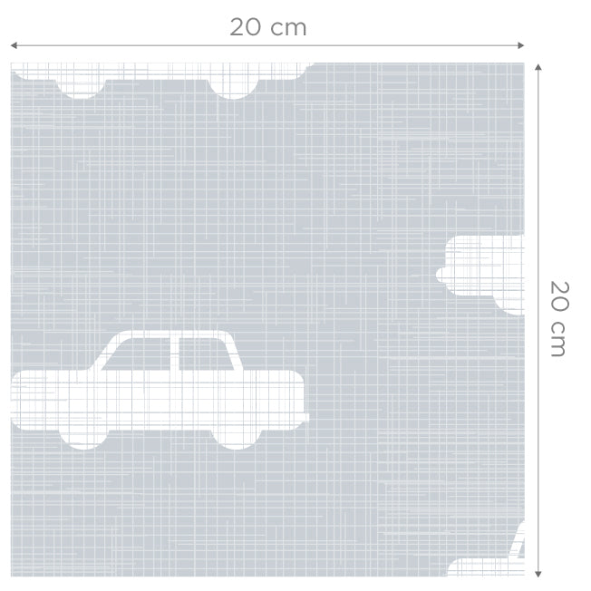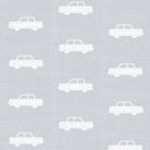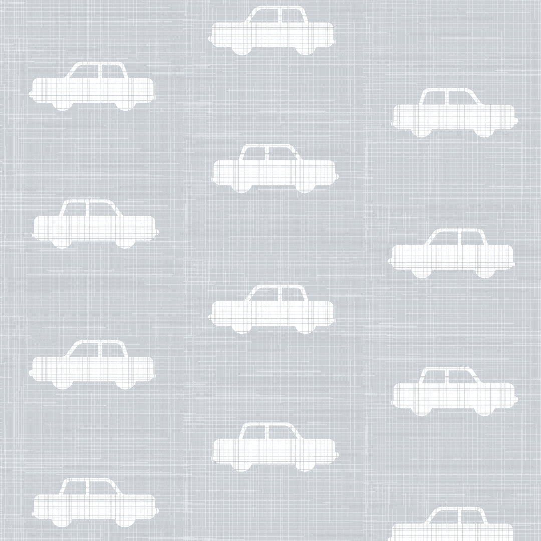 Wallpaper with white retro style cars onto blue, printed onto a high-quality non-woven paper