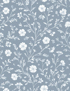 Wallpaper with white floral motif on nordic blue background - FLORA NORDIC BLUE