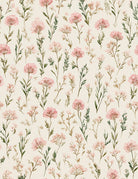 Wallpaper with elegant pink flowers onto a white background, printed onto a high-quality non-woven paper (traditional wallpaper).