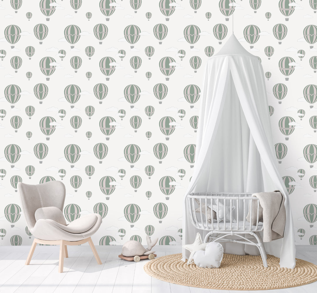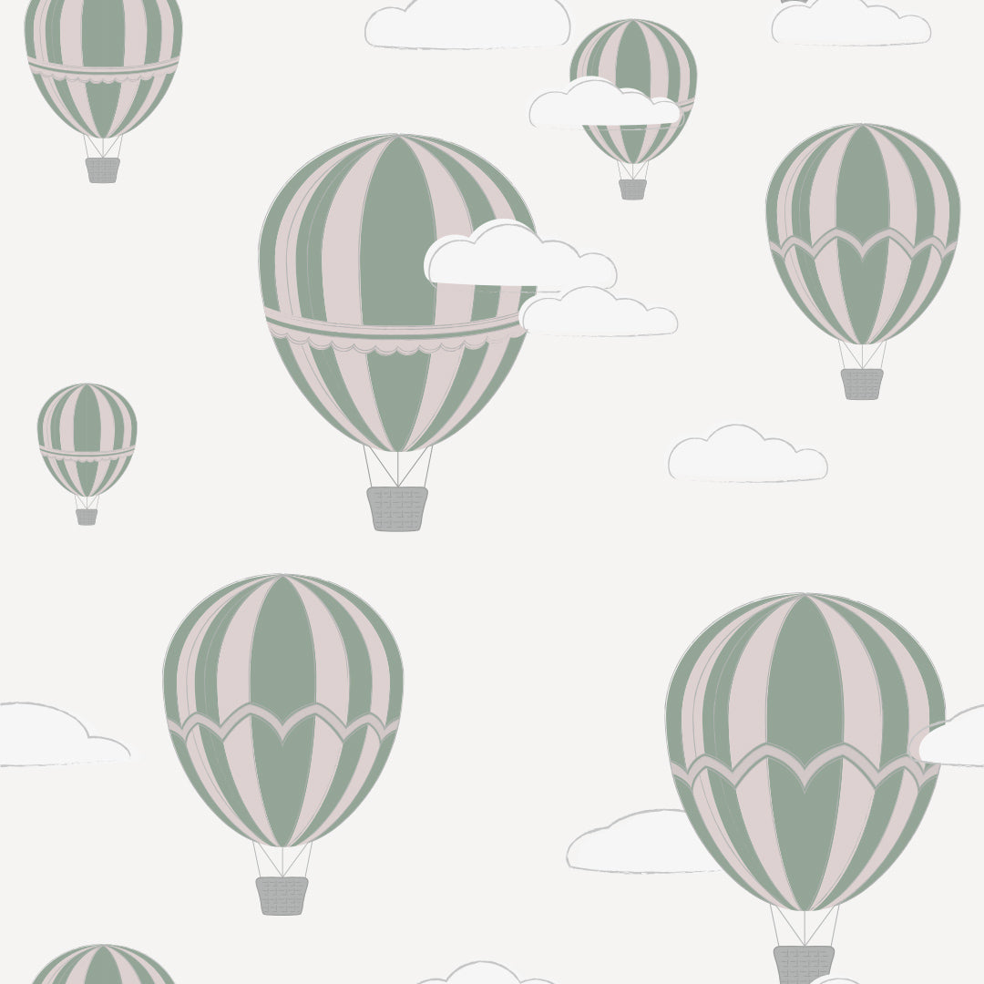 Wallpaper with green and beige airballoons for kids room - AIRBALLONS GREEN