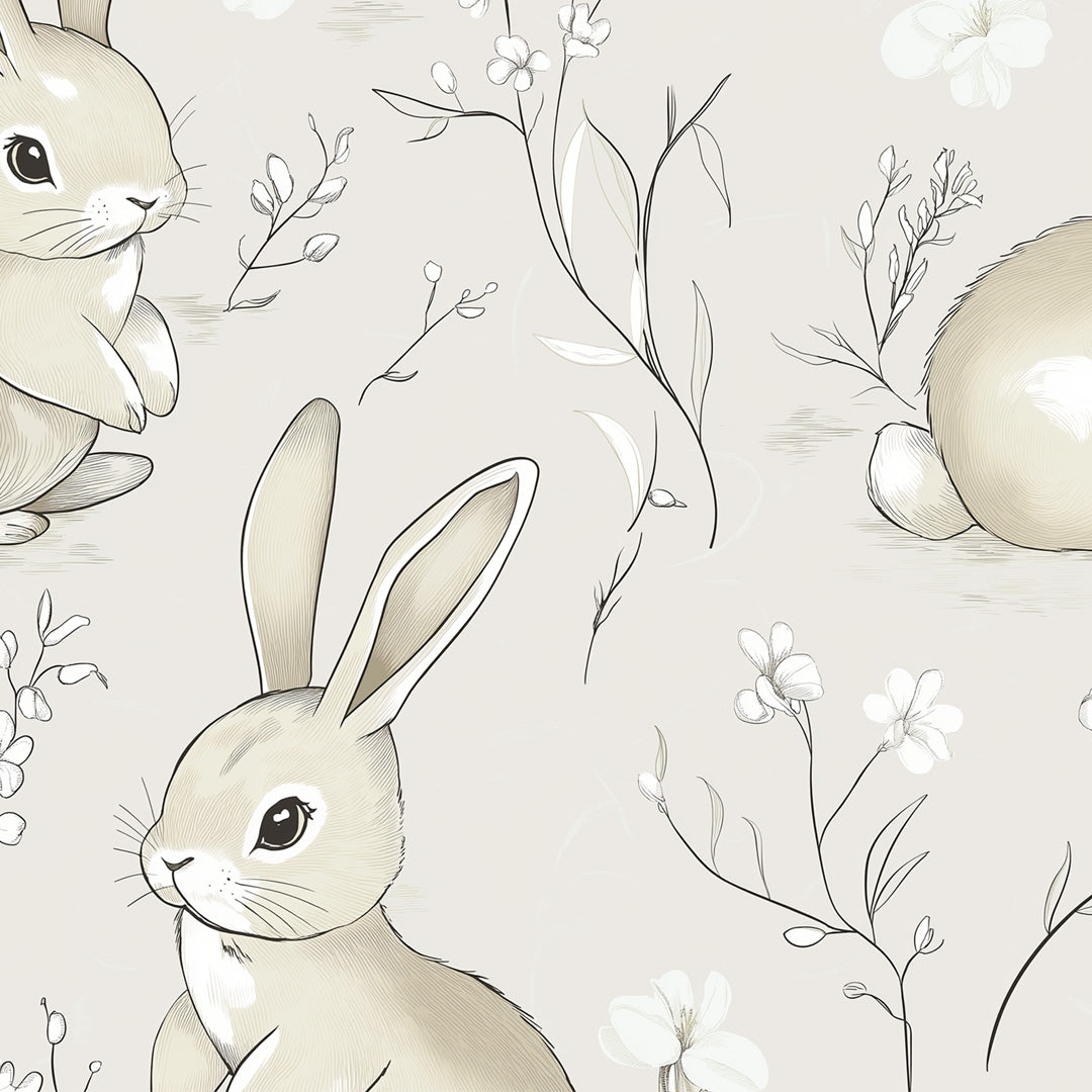Wallpaper with Bunnies in Grey - BOBBY GREY