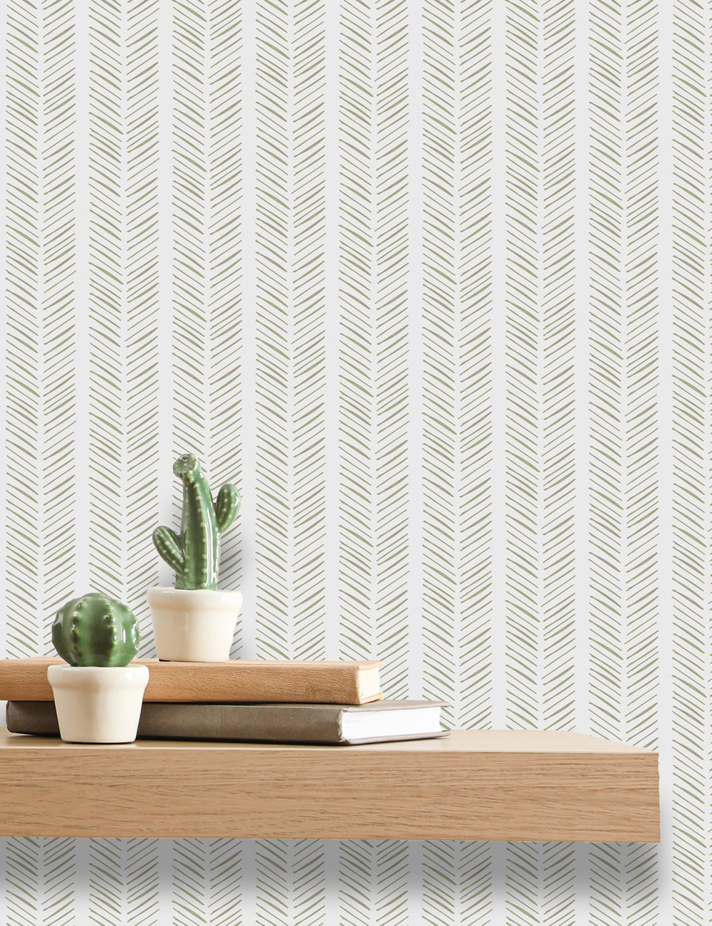 Wallpaper with herringbone design - HARRY GREEN/GREY