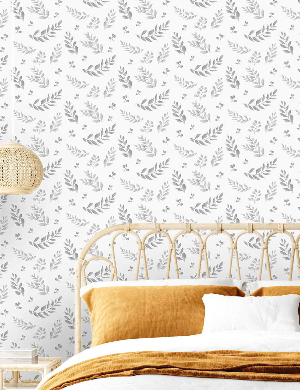 Wallpaper with grey leaves onto white background - LEAFY GREY