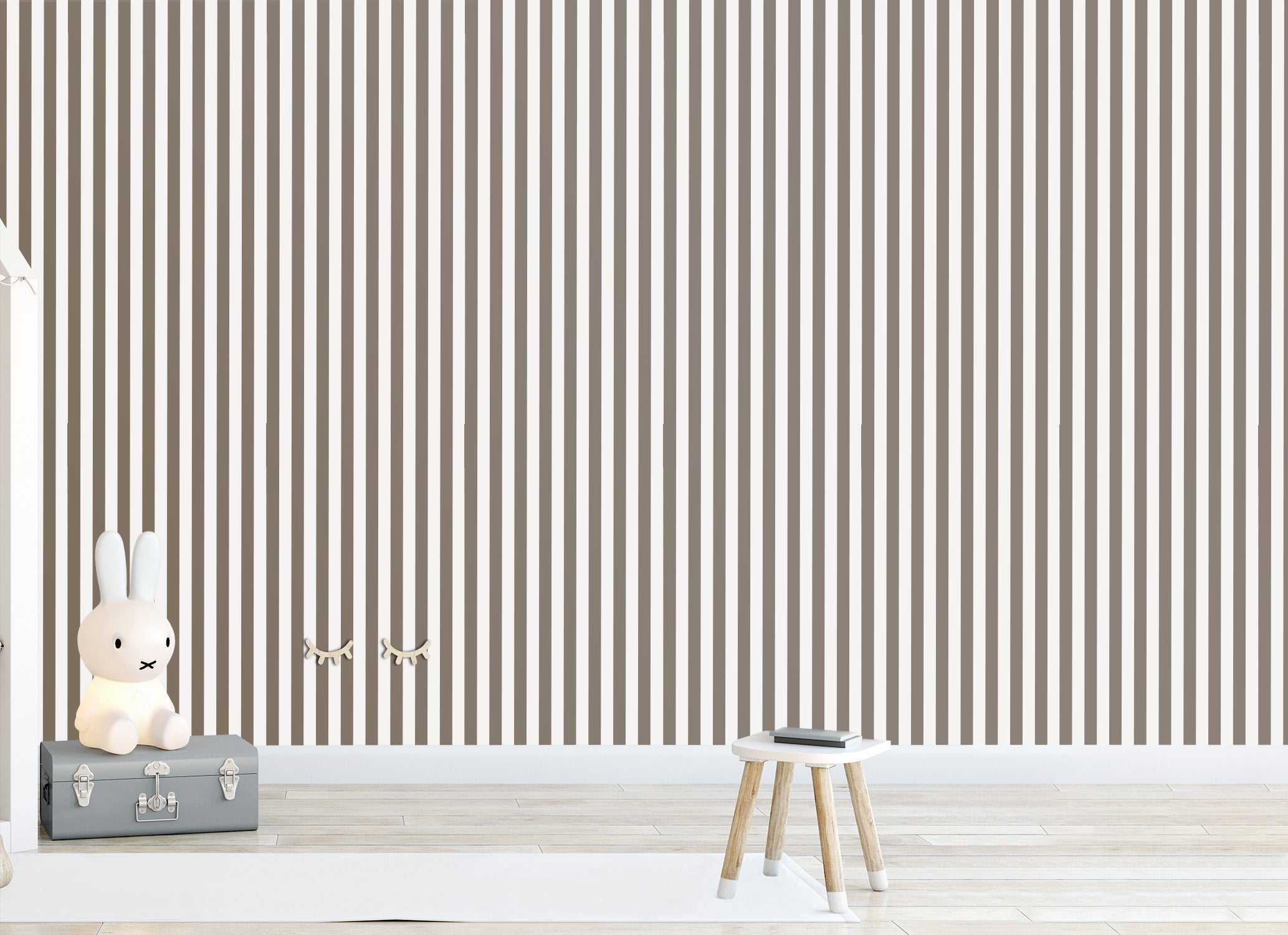 Wallpaper with mole beige and white stripes, printed onto a high-quality non-woven paper