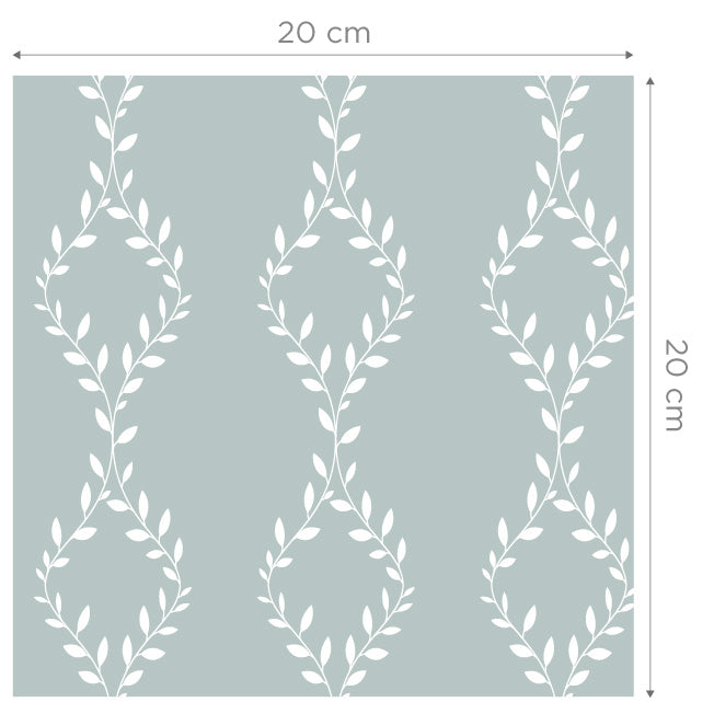 Sample wallpaper with white floral motif on vintage blue background - FLORA RETRO BLUE