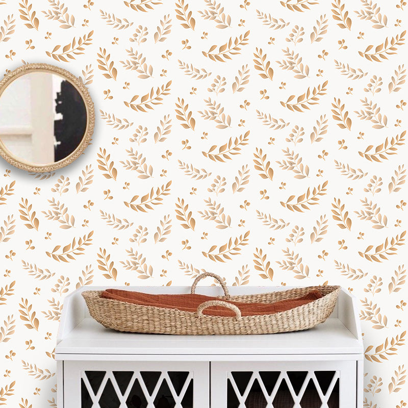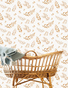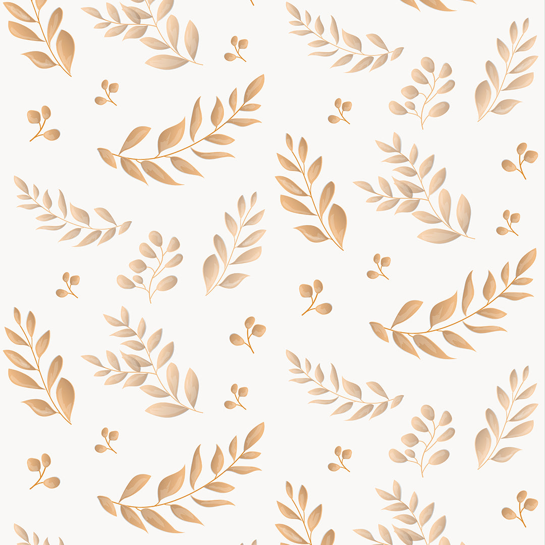 Wallpaper with terracotta leaves onto white background printed onto a high-quality non-woven paper.