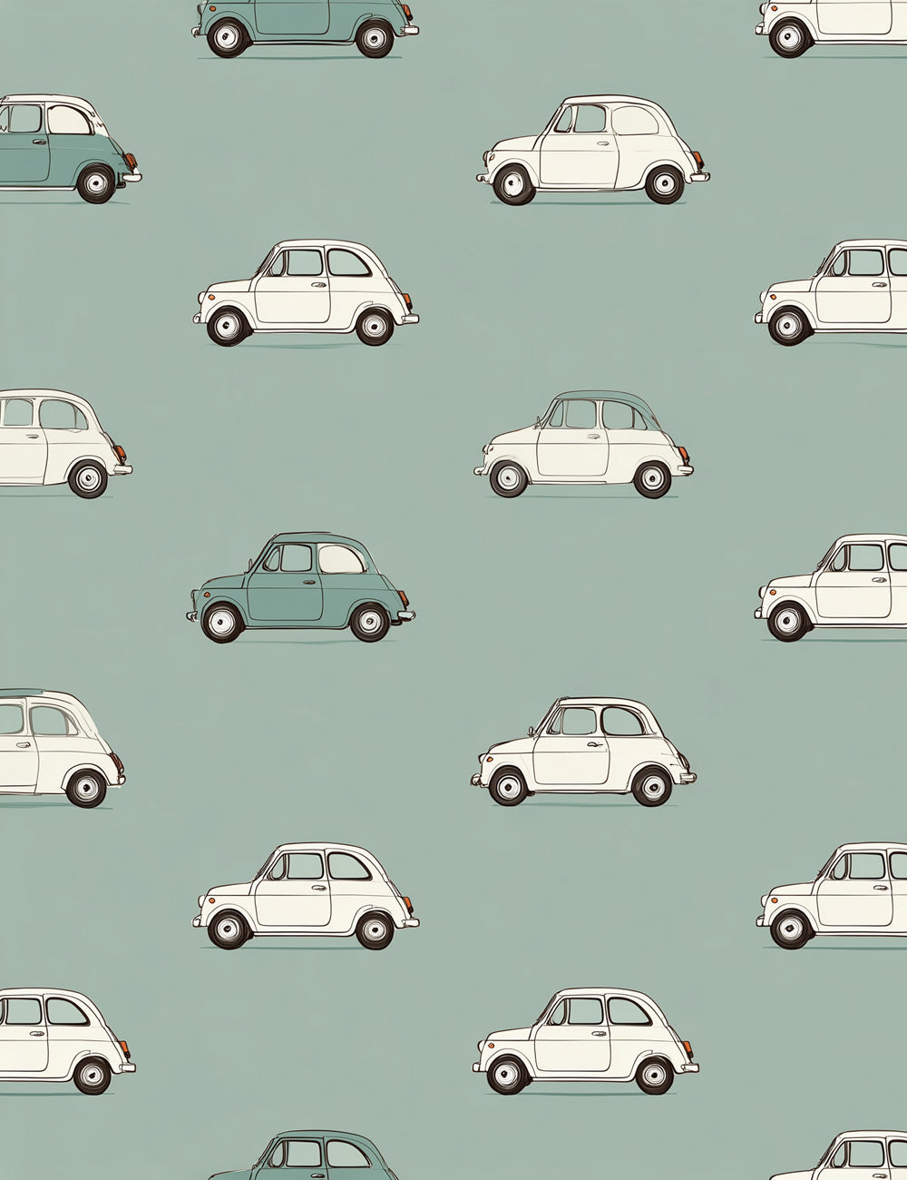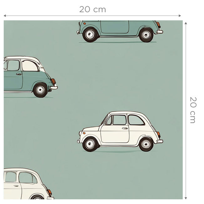 Wallpaper with vintage cars white and sage green - CARS 02