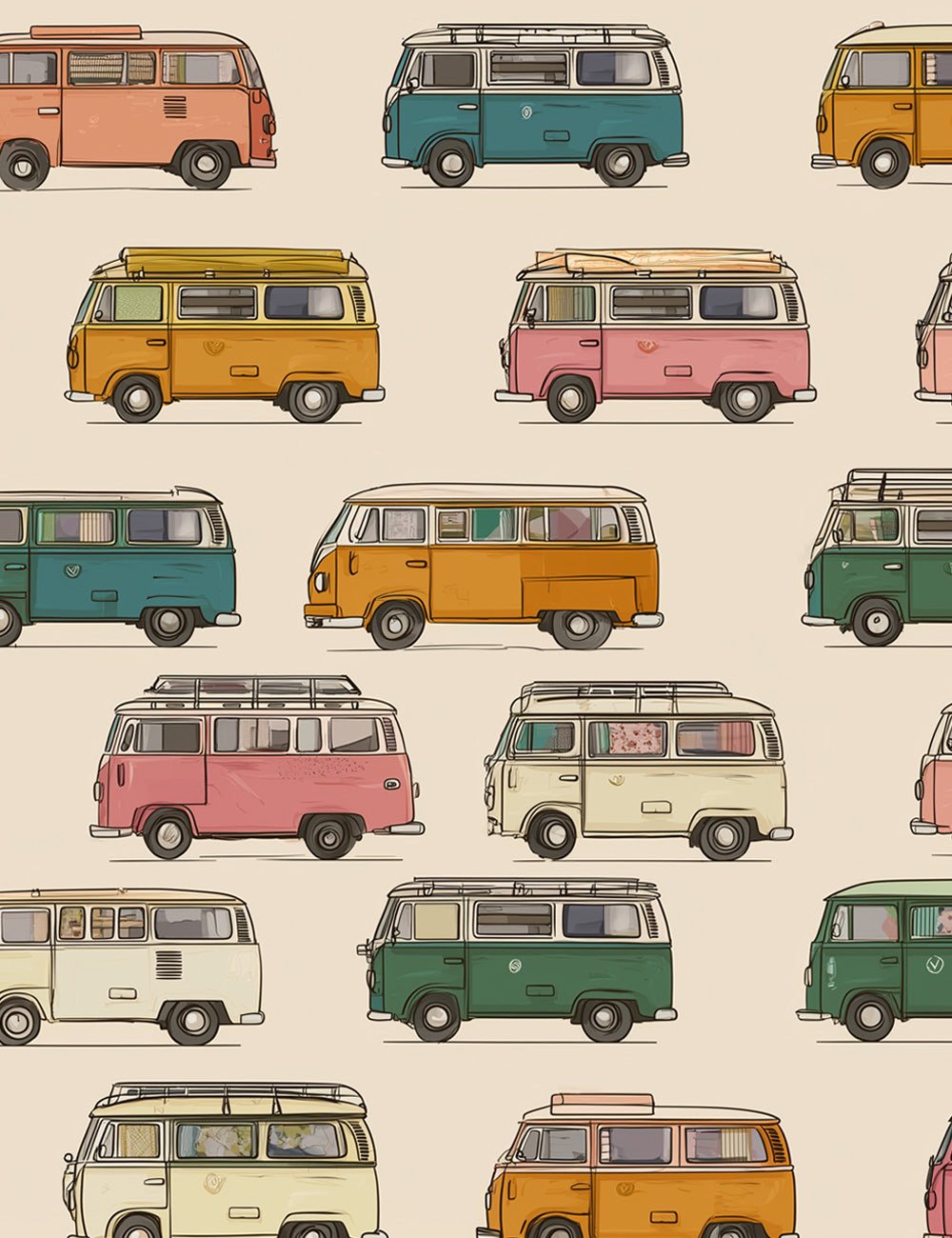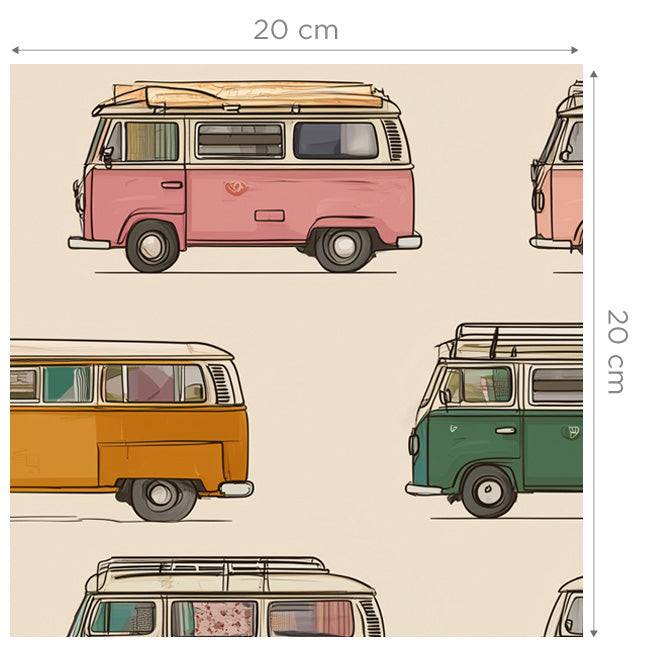 Wallpaper with colourful Volkswagen minibuses - FUNKY BUS