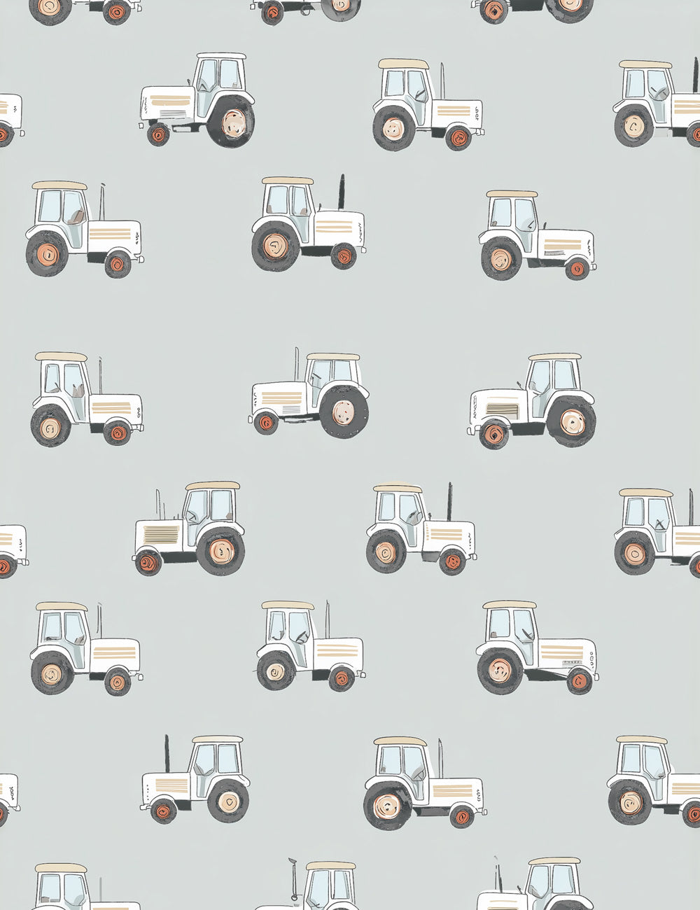 Wallpaper with tractors in beige and grey - TRACTOR