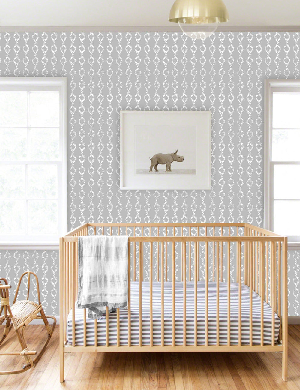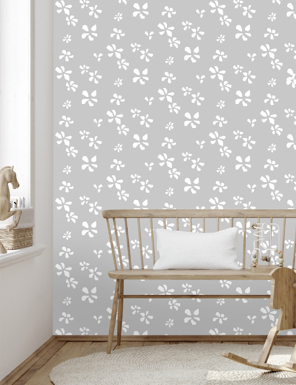 Papier peint motif floral graphique blanc sur gris - KLARA GREY
