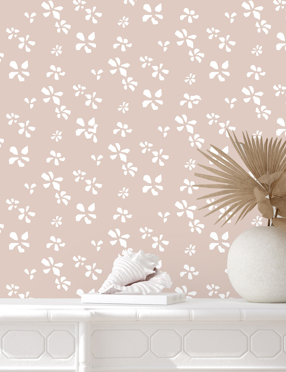 Papier peint motif floral graphique blanc sur beige - KLARA BEIGE