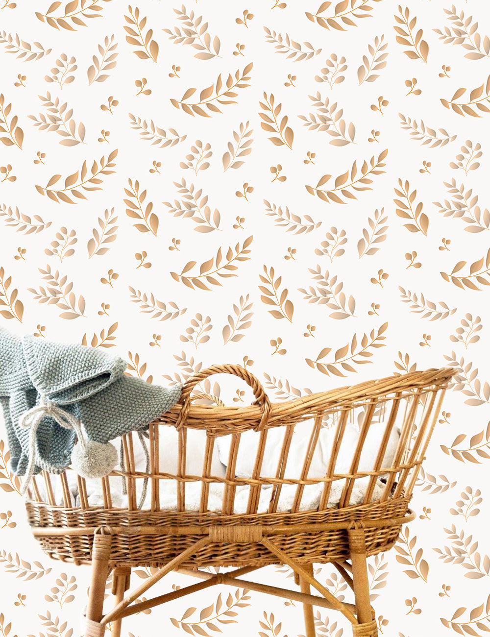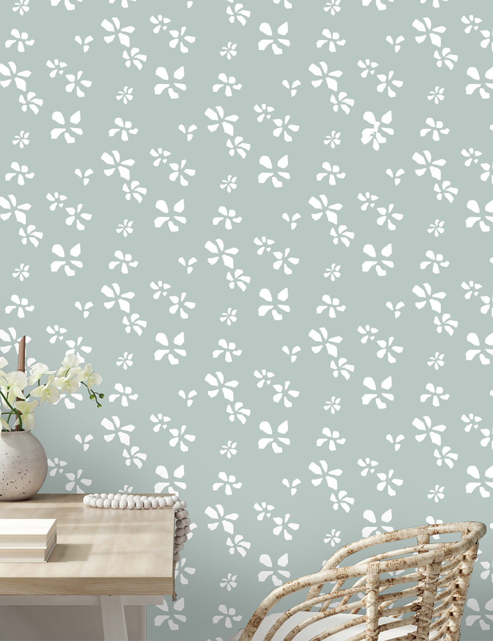 Papier peint feuilles blanches sur fond vert sauge - CLEO GREEN