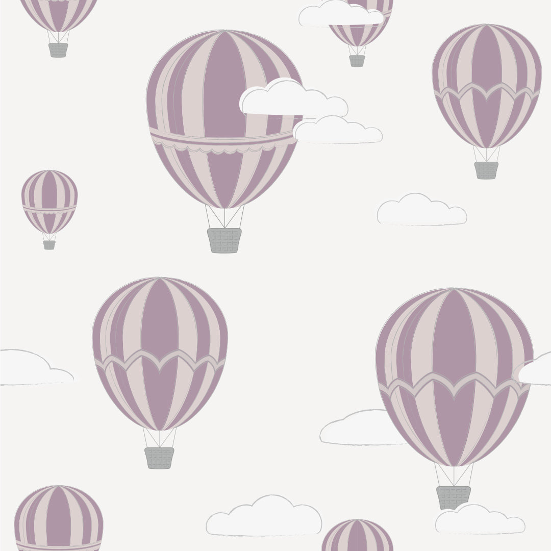 Échantillon papier peint motifs montgolfières violet et beiges - AIRBALLOONS PURPLE