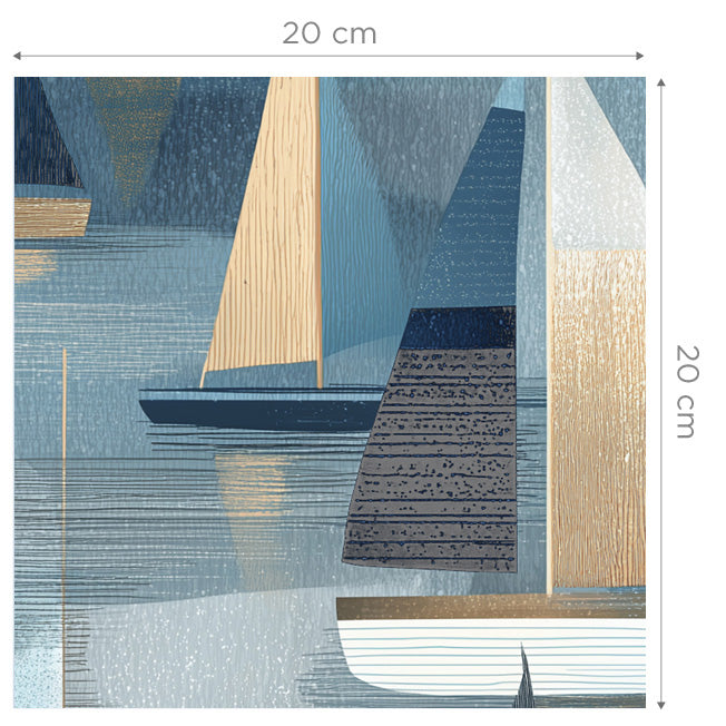 Papier peint avec motif bateaux abstrait en tons bleus et beiges, imprimé sur un papier intissé de haute qualité