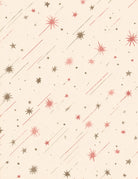 Wallpaper with shooting star motif in pink and beige hues, printed onto a high-quality non-woven paper (traditional wallpaper).